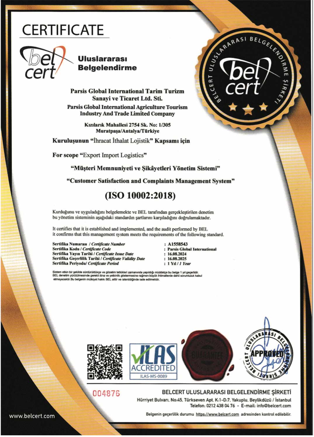 ✅ GACC (General Administration of Customs of China) Certification – Customs and quality approval for export to the Chinese market